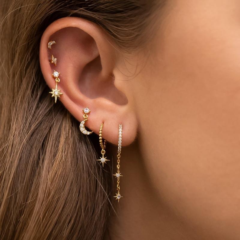 Дизайнерская Серьга-кольцо из Нержавеющей Стали с Кубическим Цирконием для Женщин Звезда Луна Подвеска Панк Пирсинг Хряща Украшение