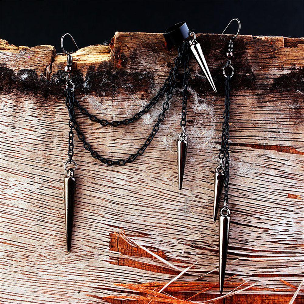 1 pair Fashion Vintage Rock Drop Ear Hook Long Tassel Ear Stud Punk Earrings Ear Clip Rivet