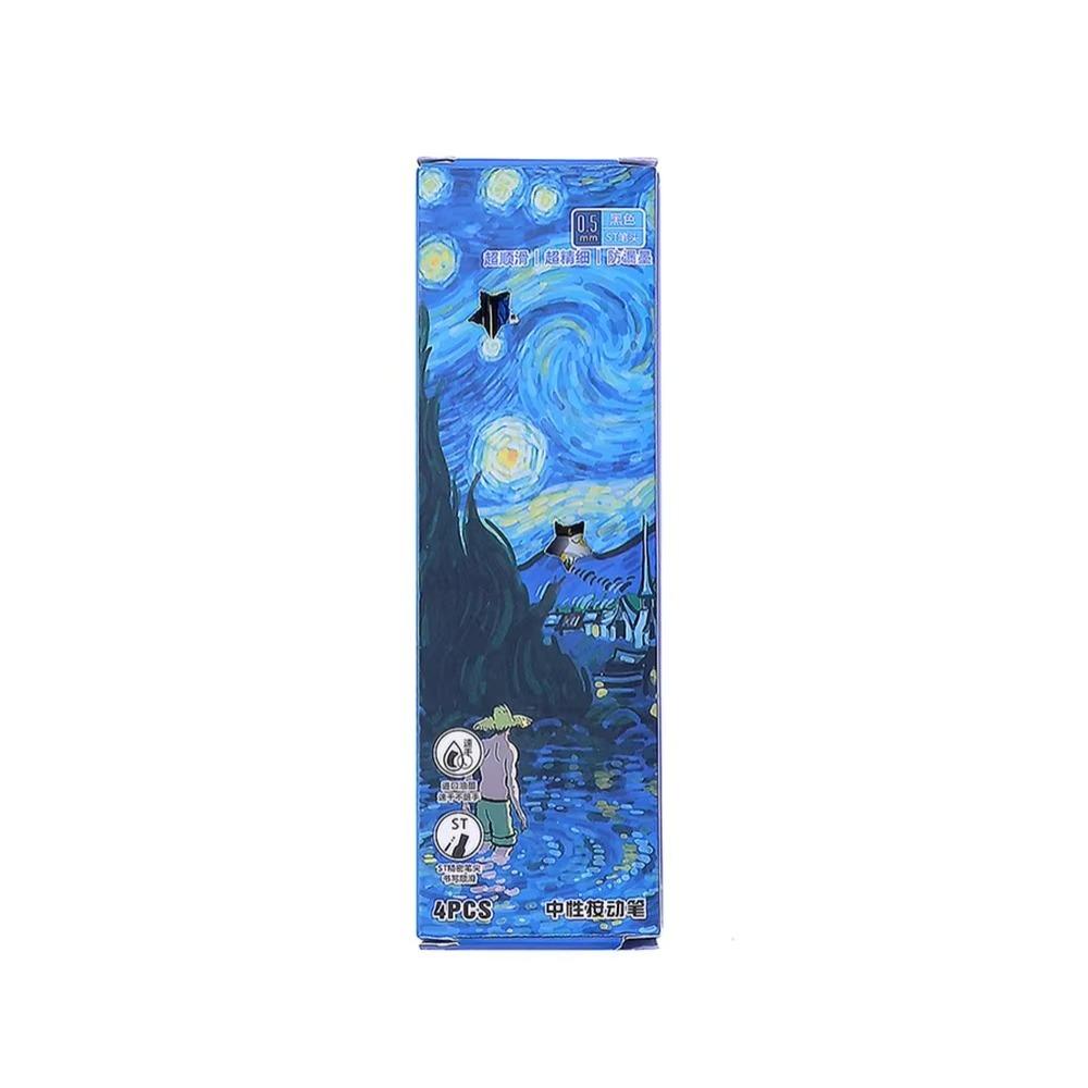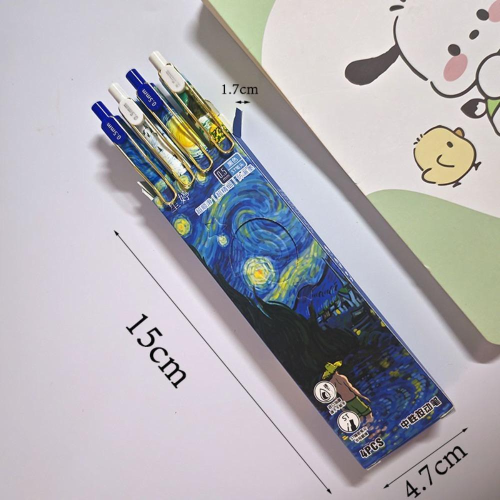 4Pcs/Box 0.5mm Quick-Drying Pens Van Gogh Oil Painting Rollerball Pen Trendy Press Gel Pen Exam