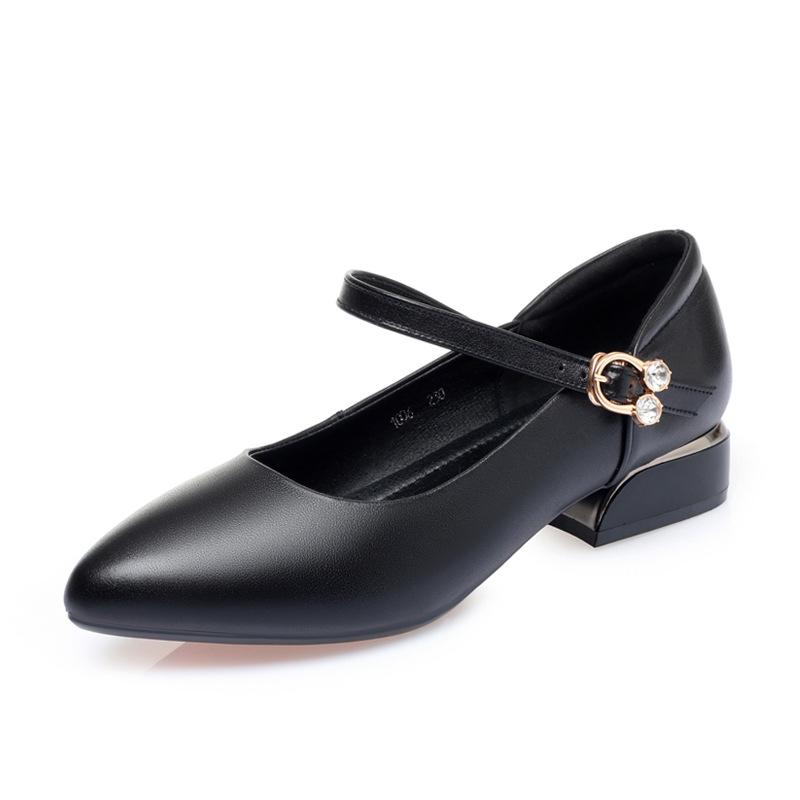 Модные женские туфли-лодочки из натуральной кожи с острым носком, офисные туфли, ремешок с пряжкой, неглубокий вырез, высокие каблуки, толстый каблук, свадебная женская обувь