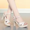 Мода Мода Женские Босоножки на Толстом Каблуке Сексуальные Туфли на Высоком Каблуке Босоножки на Платформе Женские С Открытым Носком С Кристальной Пряжкой Туфли для Свадьбы