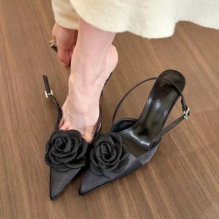 Модные классические туфли на каблуке с открытой пяткой, черные туфли-шпильки с острым носком, женская обувь, летние модные босоножки, туфли-лодочки для женщин 2024