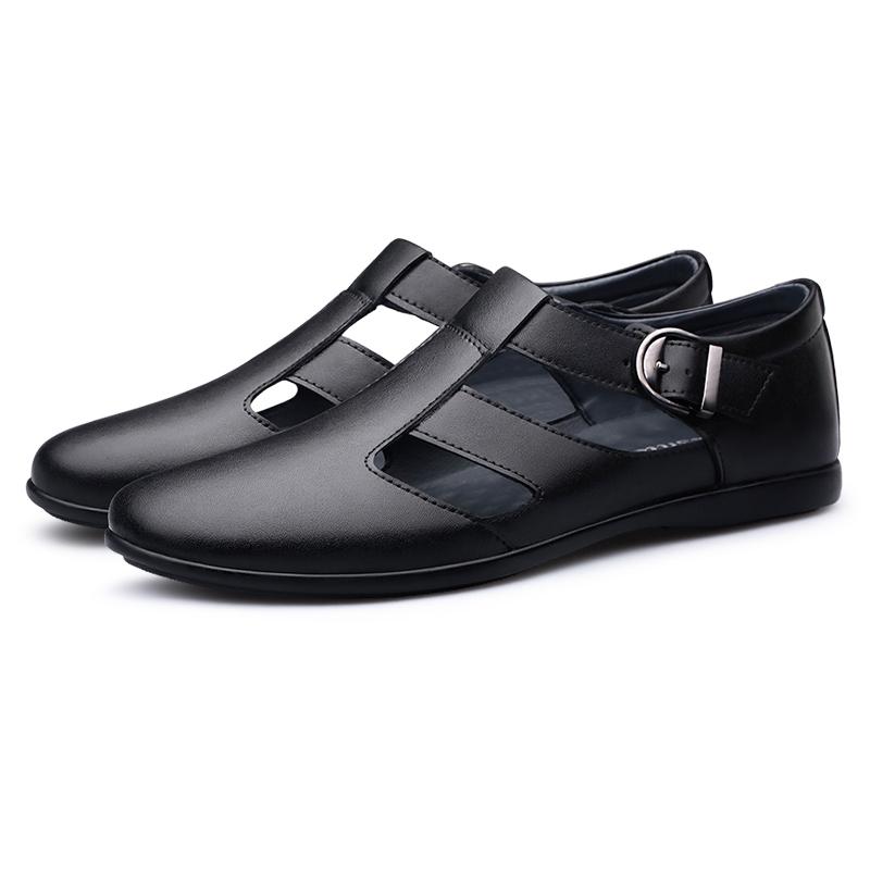 Модные летние новые удобные уличные кожаные сандалии на мягкой подошве мужские повседневные шлепанцы спортивные кожаные нескользящие дышащие деловые туфли