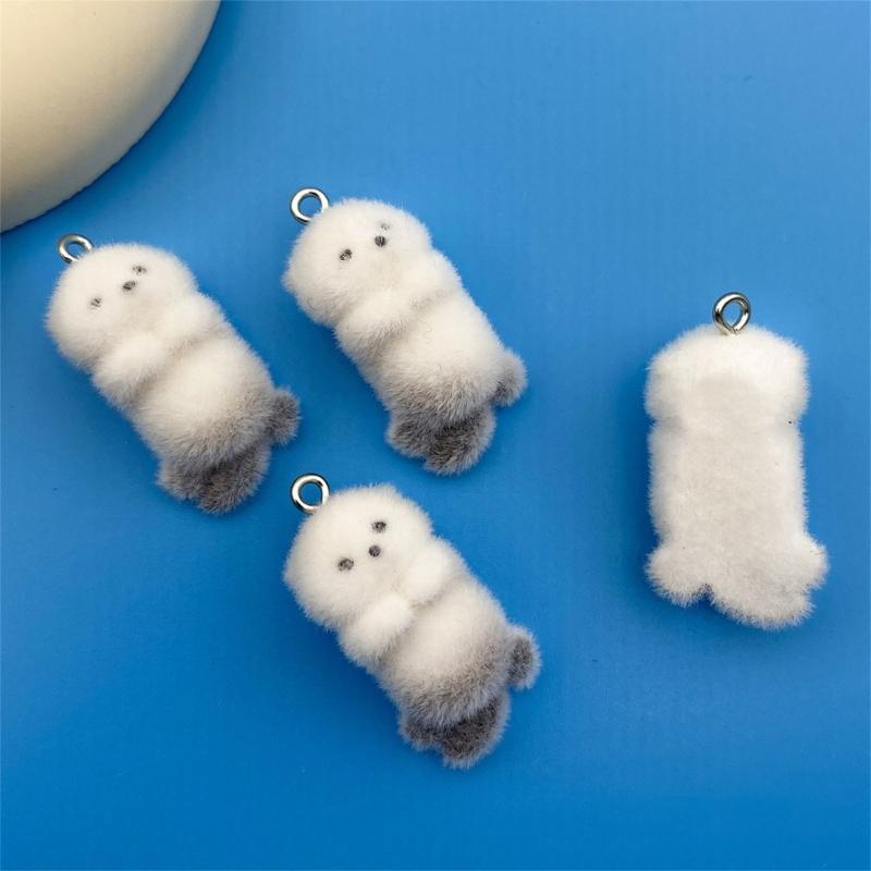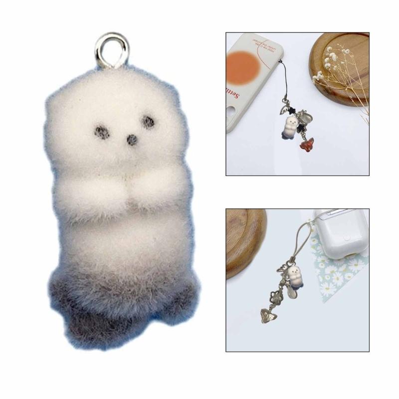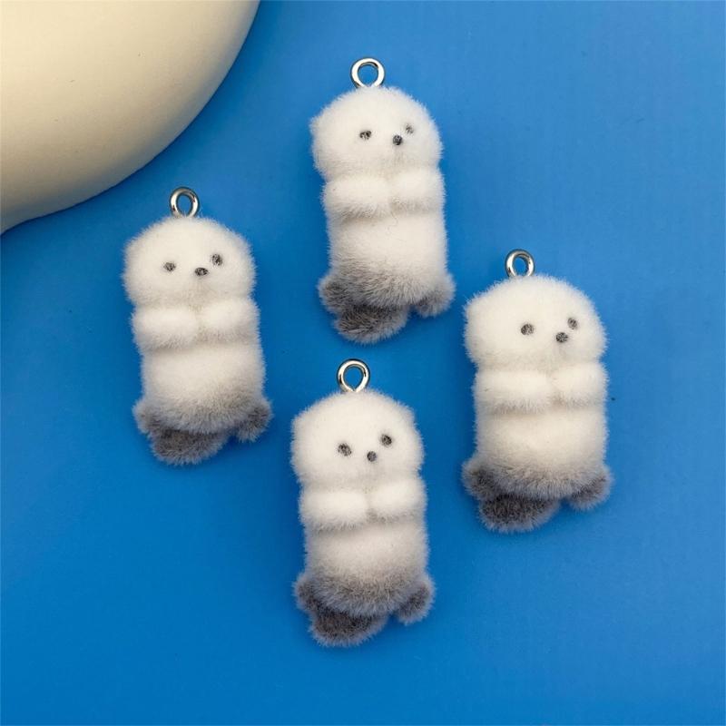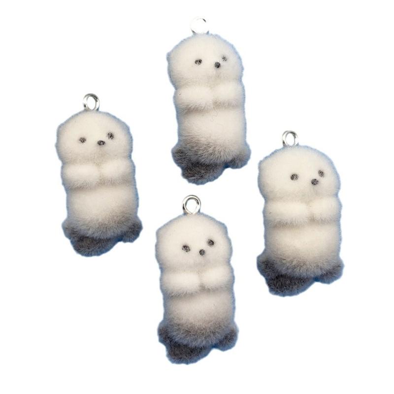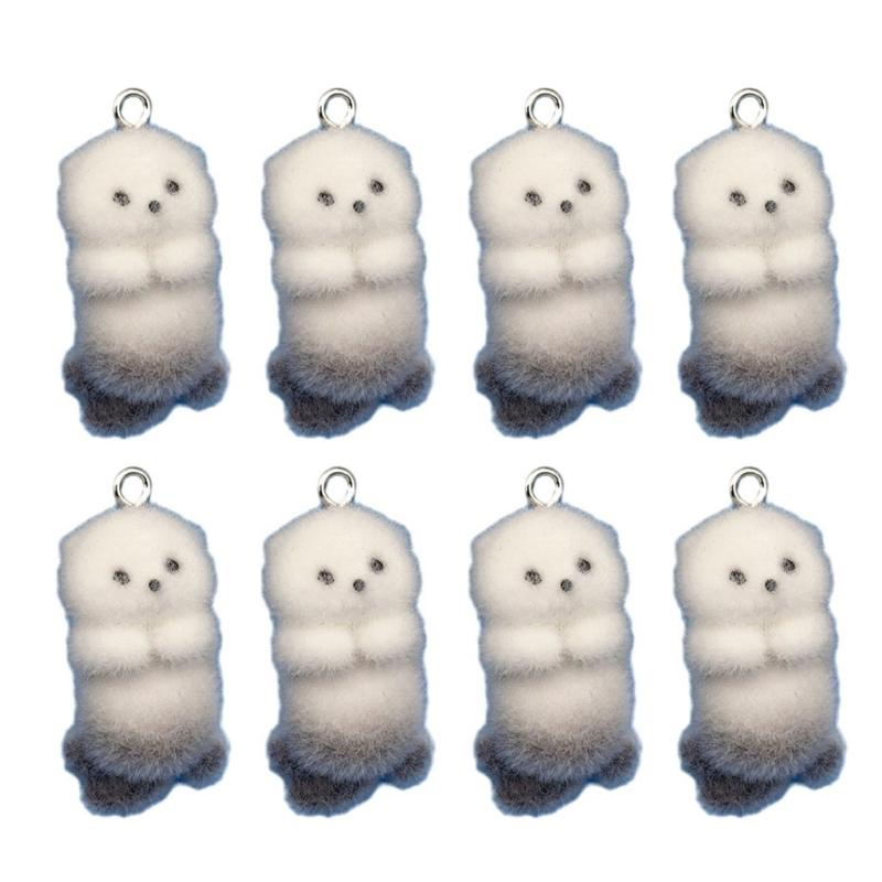 4/8Pieces 3D Flocking Otters Charm Set for Handmade Keychain Jewelry Creation Jewelry Accessories Plastic/Resin Texture