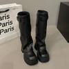 Зимние женские байкерские ботинки, модные женские элегантные длинные ботинки на платформе с пряжкой на платформе, повседневные женские сапоги до колена