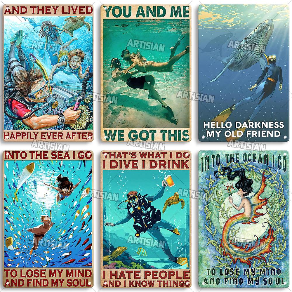 Художественный Плавание Металлический Знак Дайвинг Жестяная Тарелка Спорт Декоративная Табличка Океан Забавный Декор Стены Гараж Бар Паб Клуб Отель Кафе