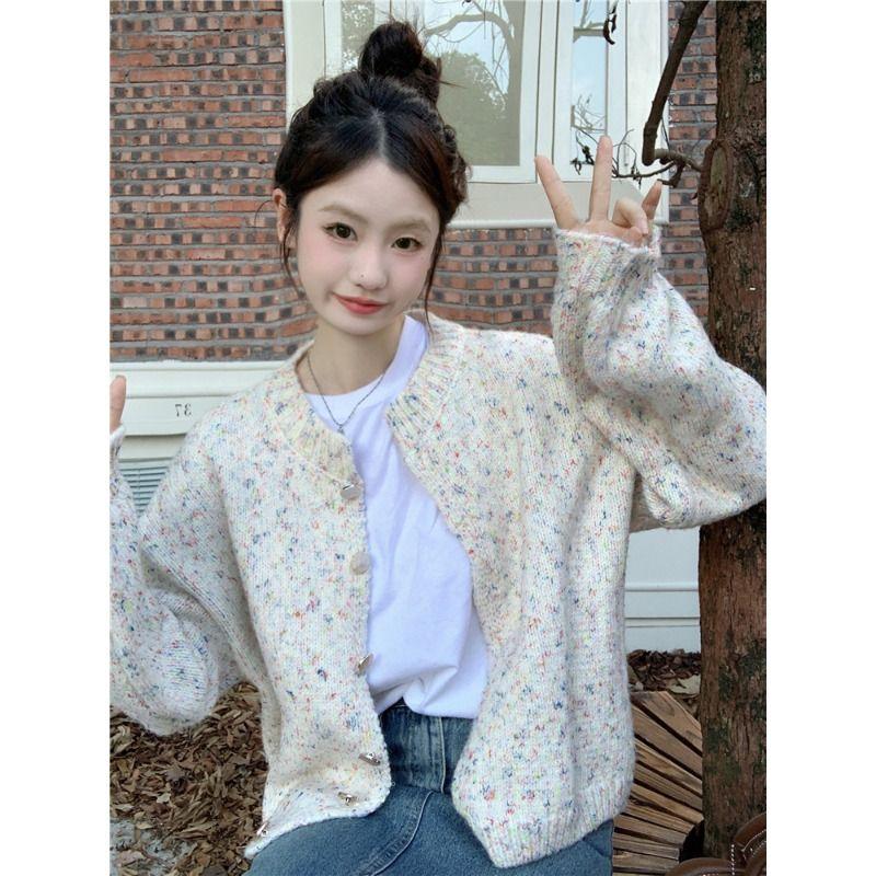Женский кардиган-свитер с круглым вырезом на осень и зиму, мягкий, ленивый, свободного кроя, вязаная куртка с цветными точками
