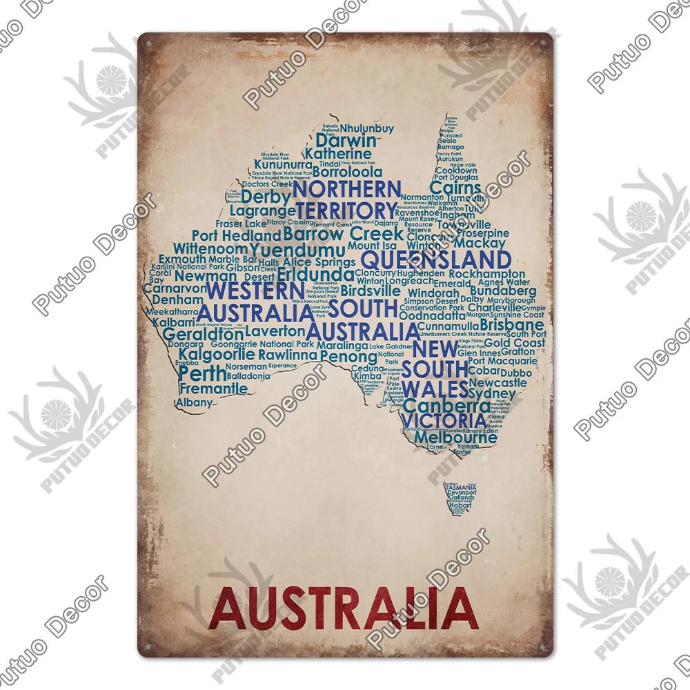 Putuo Decor Австралия Металлическая табличка Металлическая винтажная афиша Жестяная табличка Украшение для бара Клуба Дома Гостиной Стены Домашний декор