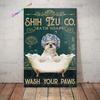 Металлическая жестяная вывеска для домашних животных, ши-тцу, мыло для мытья лап, печатный плакат, ванная комната, туалет, гостиная, домашний художественный декор стены