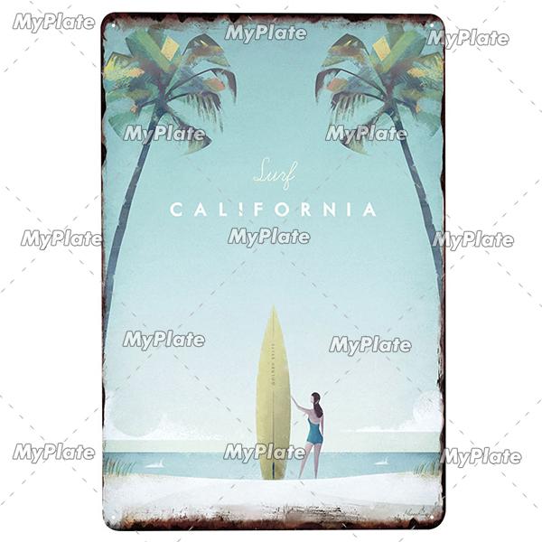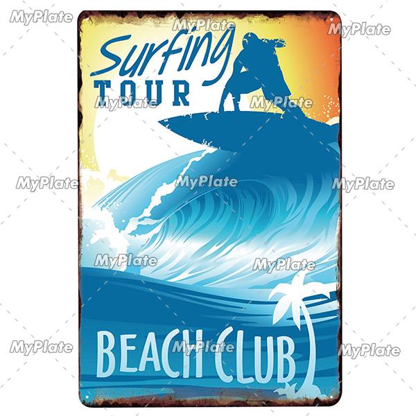 Винтажные металлические вывески для серф-магазина, декор, ржавая жестяная вывеска, наклейки для настенного искусства, гавайский постер для бара, паба и клубной комнаты, настенное украшение
