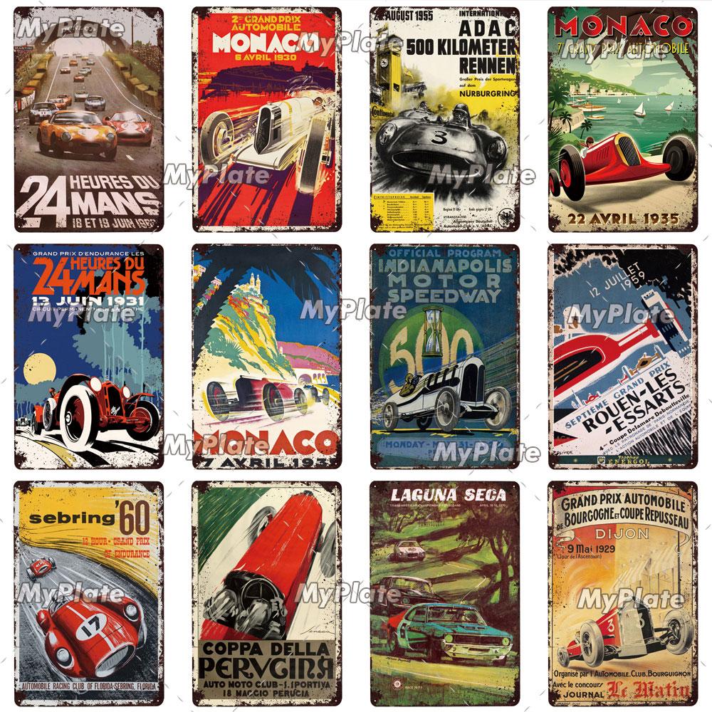 Металлический знак 24 Heures du mans, винтажная табличка, жестяная вывеска, настенный декор для бара, паба, металлические поделки, ретро гоночный автомобиль, постер на заказ