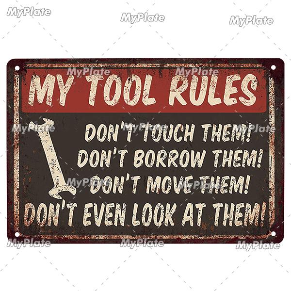 Металлический знак для гаража, металлический плакат, жестяная табличка, металлический винтажный настенный декор для бара, паба, мотоциклетного клуба, человека, пещерный инструмент, плакат с правилами
