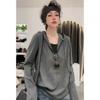 Женская футболка из чистого хлопка средней длины с капюшоном и длинными рукавами, весенняя, прикрывающая бедра, однотонная, модная
