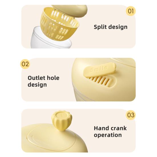 Эффективно удаляйте влагу и грязь с ваших фруктов и овощей с помощью точечной связи внизу, повышая эффективность обезвоживания.. Ручной привод исключает необходимость в батареях, предлагая простое и легкое решение, которое также экономит труд..