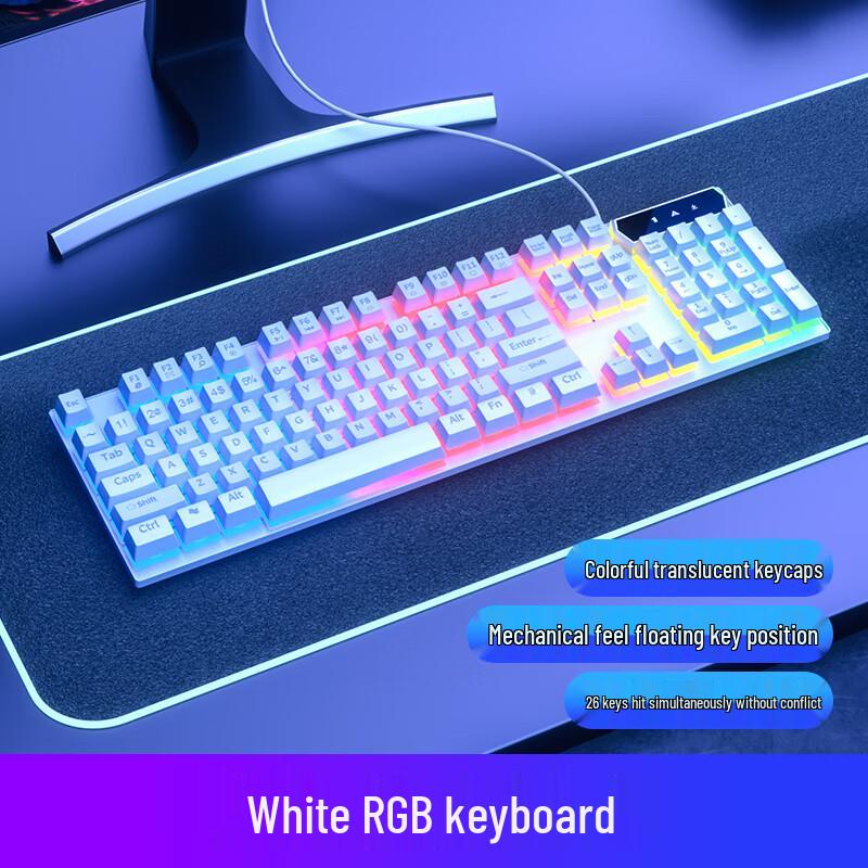 You Shi Wired White Backlit Gaming Keyboard Mouse Set