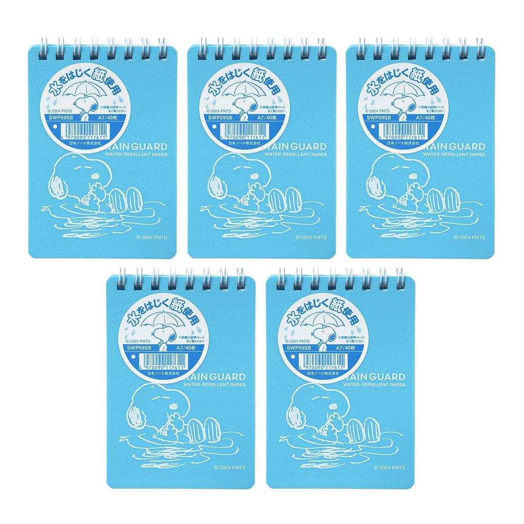Apica Rainguard Memo Snoopy Sky SWP59SB05T Pads, Design, Water-Repellent Paper, A7, Blue, 5-Pack,