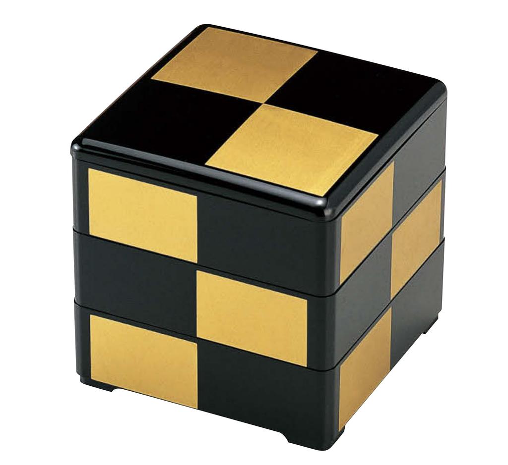 Вакаидзуми Дзюбако Черный с золотым клетчатым узором 3 лакированных ящика, 5,5 дюйма, (Черный интерьер), Тьерс, H-166-5A