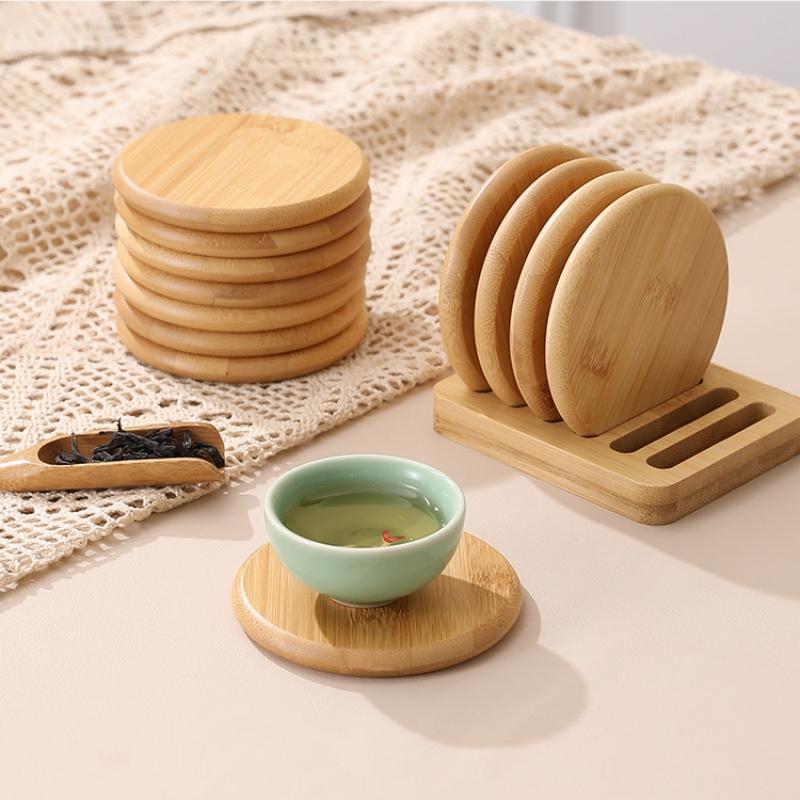 Бамбуковая круглая подставка, термостойкая, изолированная, коврик для чайной чашки, подставка, держатель, кофейные подставки, простые аксессуары для чайной церемонии