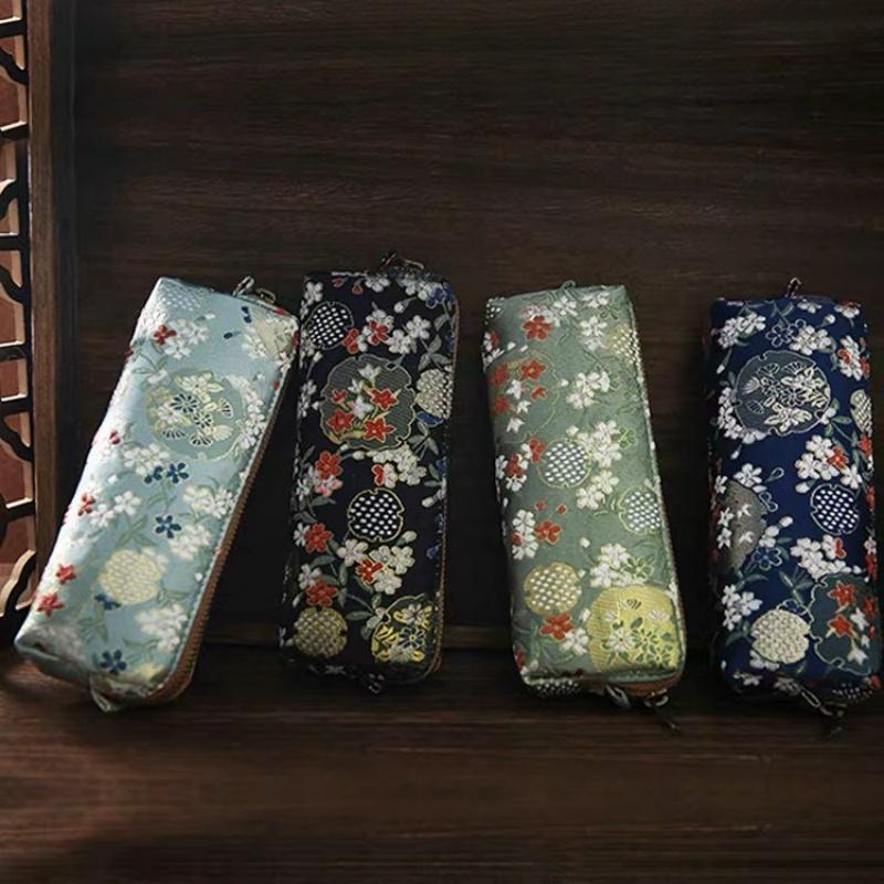 Vintage Embroidery Pencil Case Art Flower Bird Silk Brocade Pen Bags School Supplies Household Sundry Storage Pouch Kids Gifts
