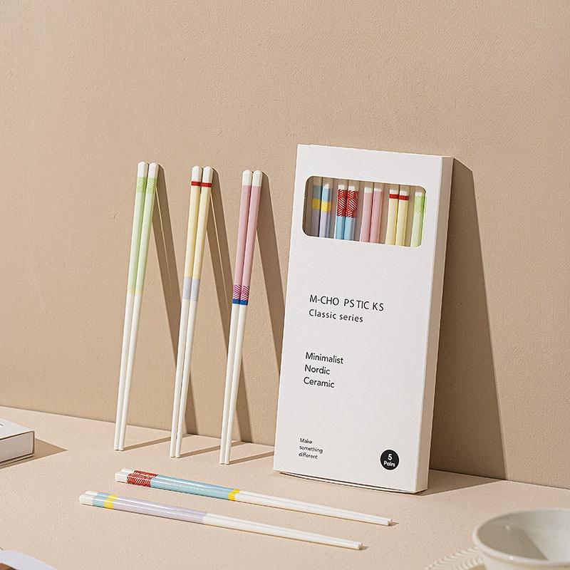 5 пар керамических палочек для еды, японские нескользящие палочки для суши, бытовая кухонная посуда, легко моющаяся, набор столовых приборов с ложкой, подарочный набор