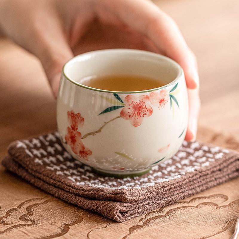 Керамическая чайная чашка в китайском стиле с ручной росписью «Цветущий персик», чашка для дегустации чая, одинарная чашка, чайная посуда для кунг-фу, домашний чайный сервиз, чайная чашка, подарок