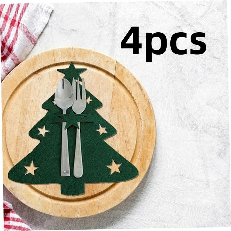 Нетканый материал Карман для посуды Органайзер Сумка для столовых приборов Декор стола Рождественский держатель для ножа и вилки Лось Рождественская елка