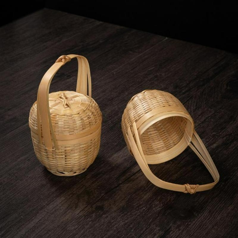 Creative Mini Handheld Bamboo Basket with Lid Home Kitchen Decorative Nut Hand Basket Portable Crafts Storage Basket 2025 New