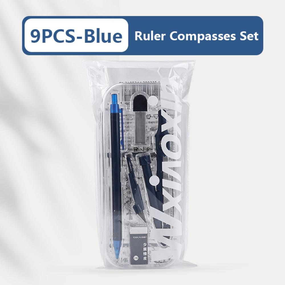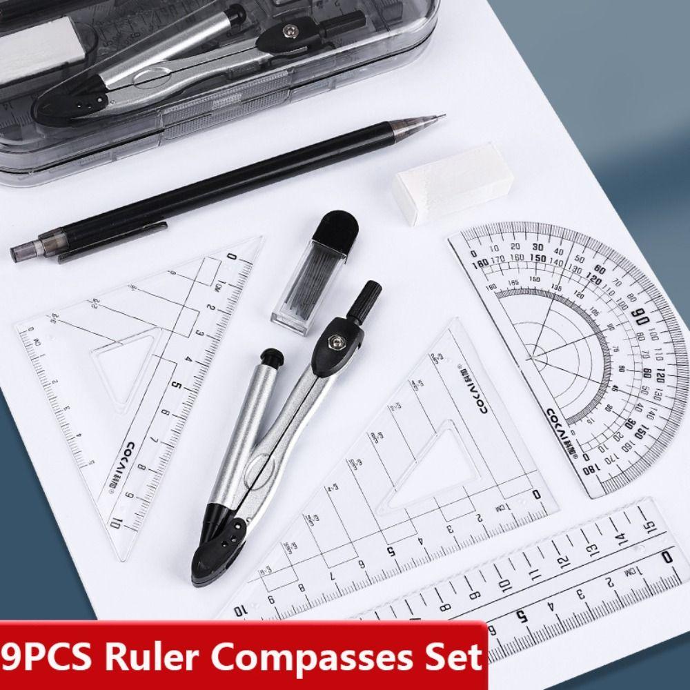 8 шт./набор Пластиковая линейка Набор циркулей Механический карандаш Ластик Измерительная линейка Набор прямых линеек Квадрат Транспортир Школа Офис