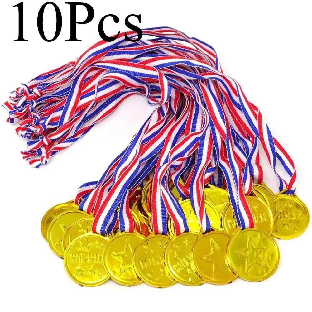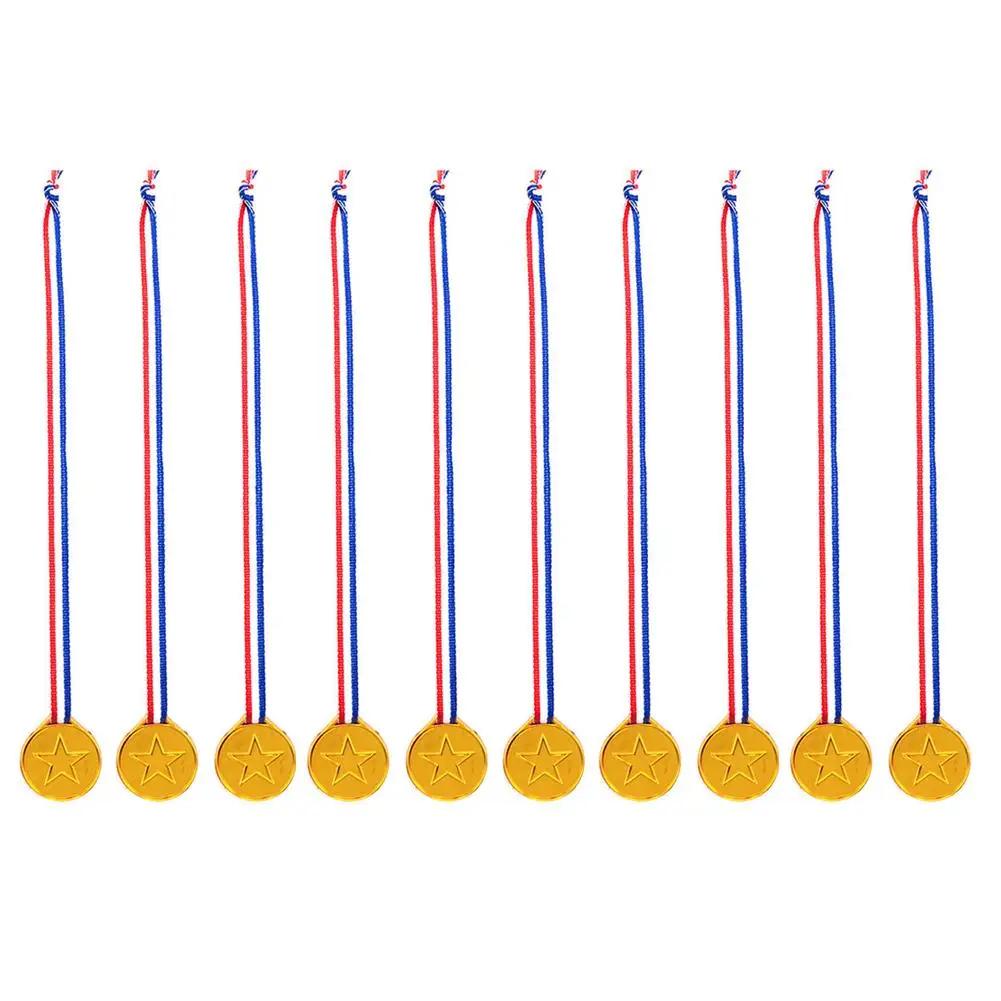 10 шт. Пластиковые золотые медали победителя Детские сувениры для дня рождения Призы для спортивных игр Игрушки Футбольная вечеринка Наполнитель для пиньяты