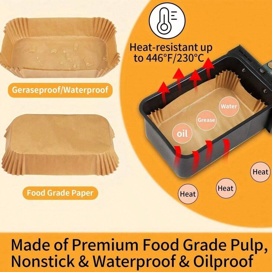 50-200pcs Large Rectangle Air Fryer Disposable Paper Liner Nonstick Airfryer Parchment Special Baking Paper Roasting Baking Mat