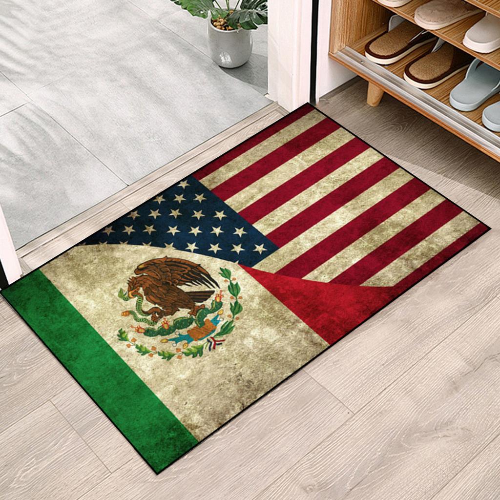 Флаг Мексики Внутренний Дверной Коврик Придверный Коврик Противоскользящая Резиновая Подкладка Коврик Перед Дверью Кристаллический Бархат Американский и Мексиканский Смешанный Напольный Коврик