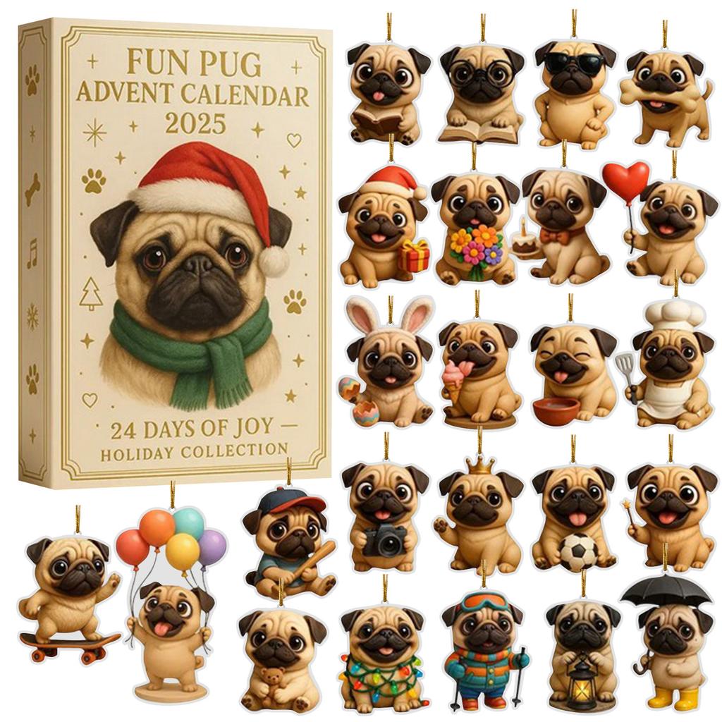 24 Days 2D Acrylic Dog Xmas Tree Decoration Tree Ornament Countdown Calendar for Kids Adults Gifts Dog Christmas Advent 2025