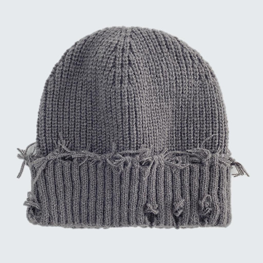 Зимние потертые дырявые шапки-бини с рисунком черепа, однотонные, хип-хоп, теплые шапки, ретро, с рваной тульей, вязаная шапка для женщин и мужчин