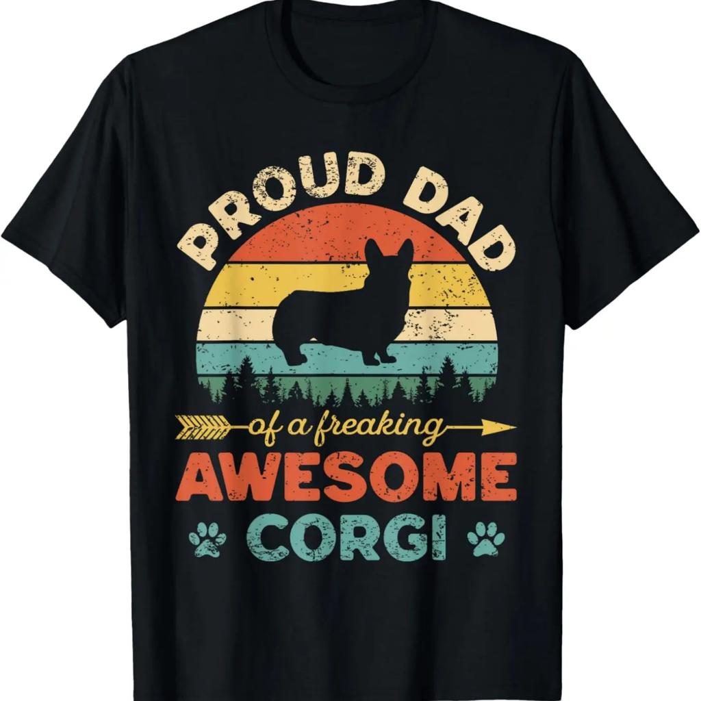 Proud Corgi Dad Vintage Retro Dog Dad Present T-Shirt