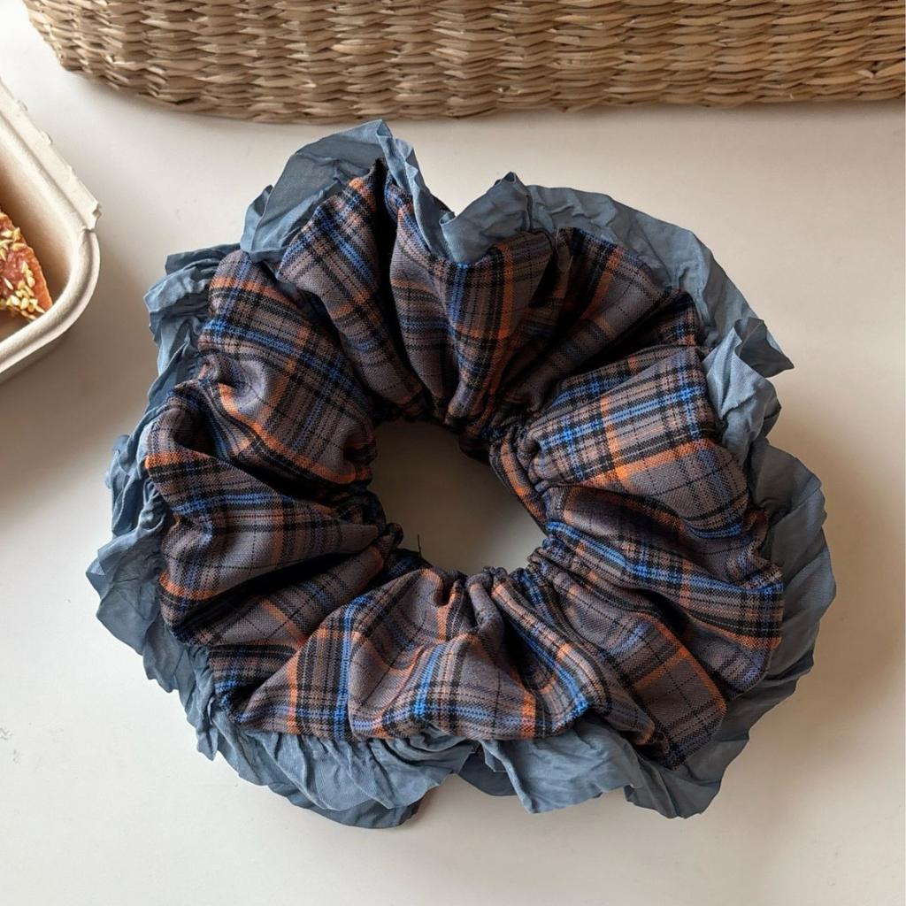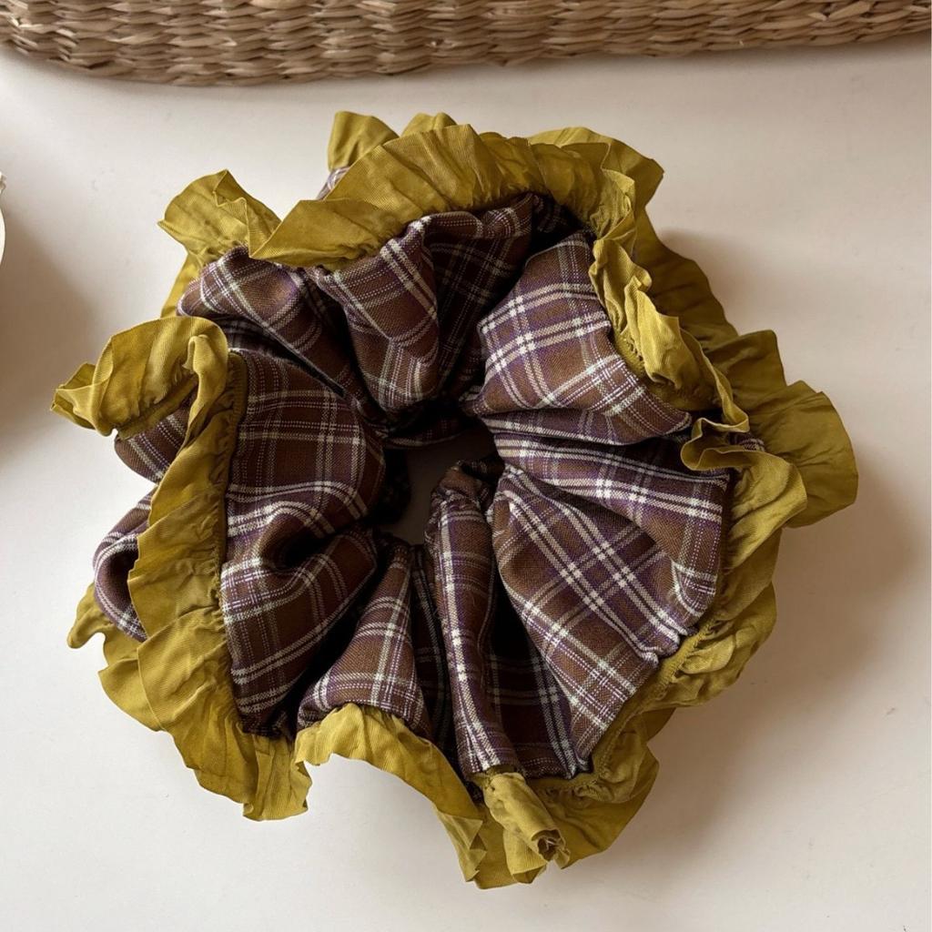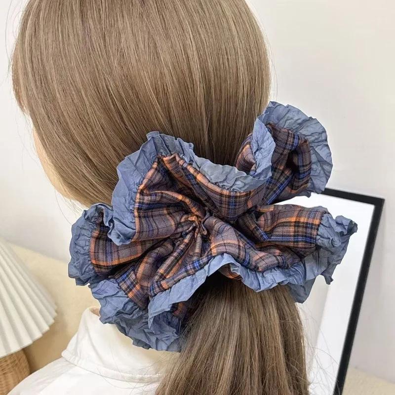 Оверсайз Клетчатый Контрастный Деликатный Рюшевый Скранчи Винтажный Большая Юбка Юбка Пучок Большого Размера Стиль Аксессуары для Волос