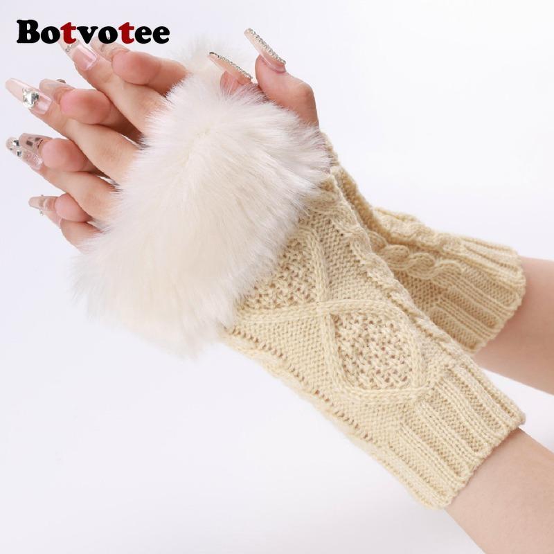 Botvotee Пушистые Y2k Аксессуары Рукава для Женщин Митенки Зимние Вязаные Бордовые Митенки Милые Защитники Рук Половина Пальца — купить товар онлайн с бесплатной доставкой по всему миру!