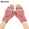 Botvotee Пушистые Y2k Аксессуары Рукава для Женщин Митенки Зимние Вязаные Бордовые Митенки Милые Защитники Рук Половина Пальца