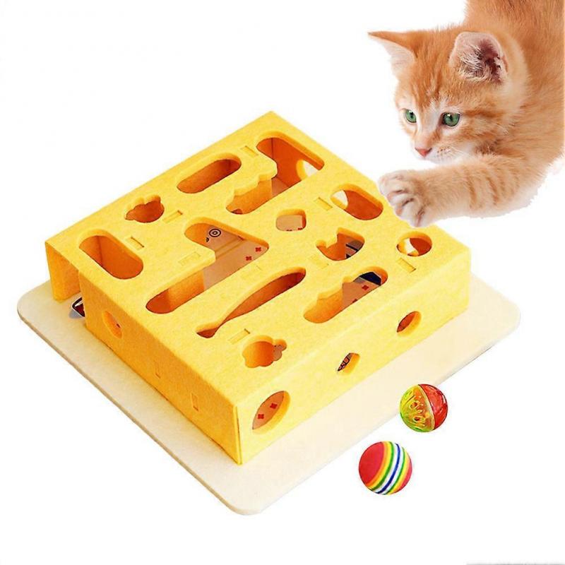 Interactive Cat Puzzle Toy Box - Fun Training Game for Indoor Cats, Scratch-Resistant Maze with Bell & Rainbow Balls for All Sizes