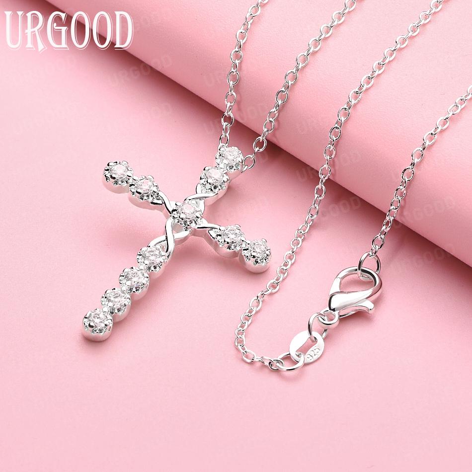 Ожерелье-подвеска из стерлингового серебра 925 пробы с цирконами AAA, в виде креста, модное, свадебное