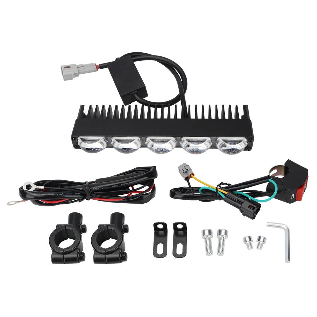 Мотоциклетная фара Светодиодная световая панель 5 линз для руля 12-24 В Прожектор LED С выключателем Комплект Подходит для большинства рулей Белый Желтый