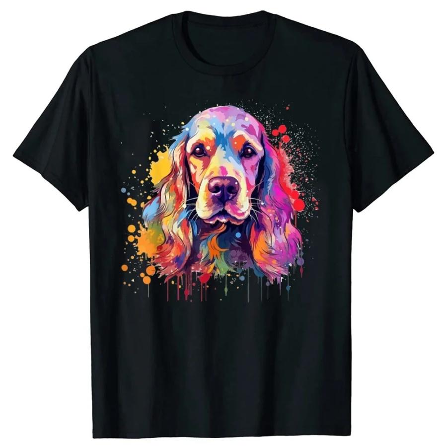 Красочная футболка с брызгами краски с кокер-спаниелем, графические футболки, мужская одежда, топы, футболка с круглым вырезом и коротким рукавом, camisetas