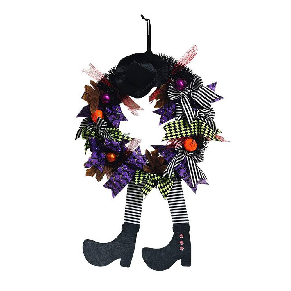 Halloween Black Wreath with Hat Witches Legs Pumpkin Long Legged Wicked Witch Wreath Front Door Garlands for Party Decor — купить товар онлайн с бесплатной доставкой по всему миру!