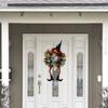 Halloween Black Wreath with Hat Witches Legs Pumpkin Long Legged Wicked Witch Wreath Front Door Garlands for Party Decor