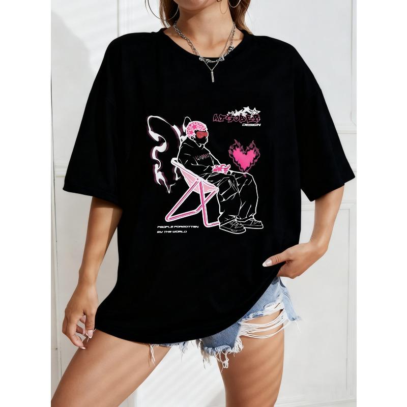 White Oversized T Shirt With Ariana Graphic And Pink Heart Design For Casual Wear — купить товар онлайн с бесплатной доставкой по всему миру!