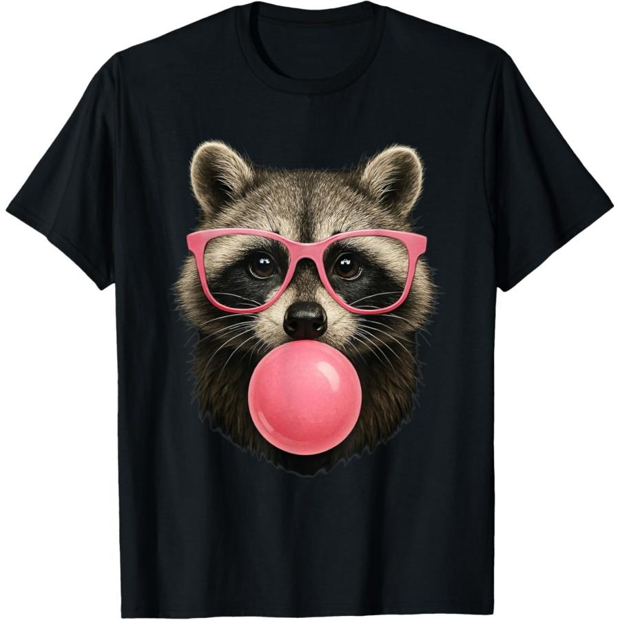 Cool Raccoon Face Eating Gum And Makes A Bubble Cute Raccoon T-Shirt