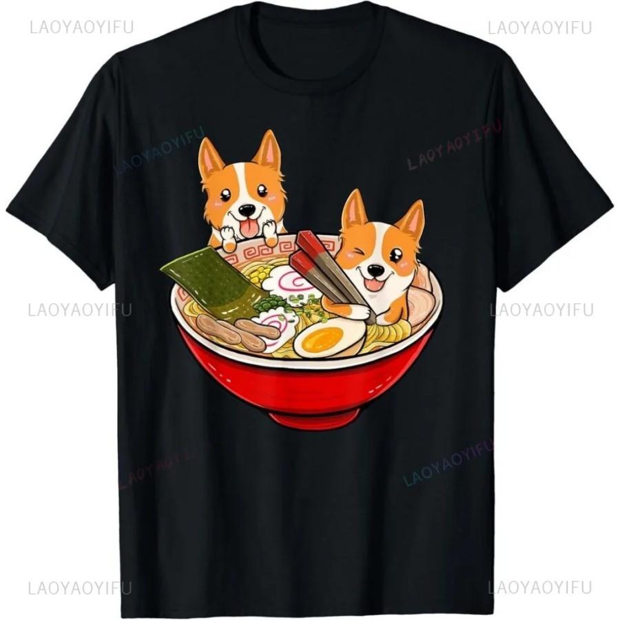 Corgi Japanese Ramen T-Shirt Funny Dog Gift Unisex T-Shirt Classic Pattern Summer Unisex T Shirt for Men Breathable Camisetas