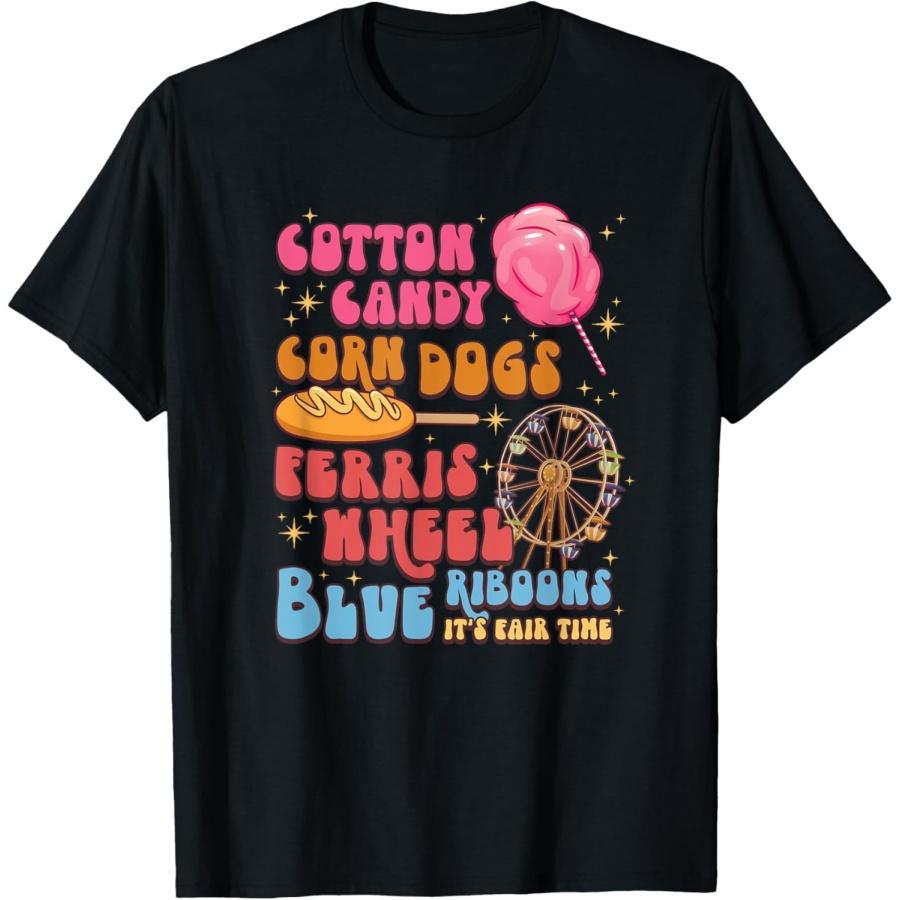 Хлопковая футболка «Сладкая вата, кукурузные собаки, окружная ярмарка, колесо обозрения, синие ленты»(1)