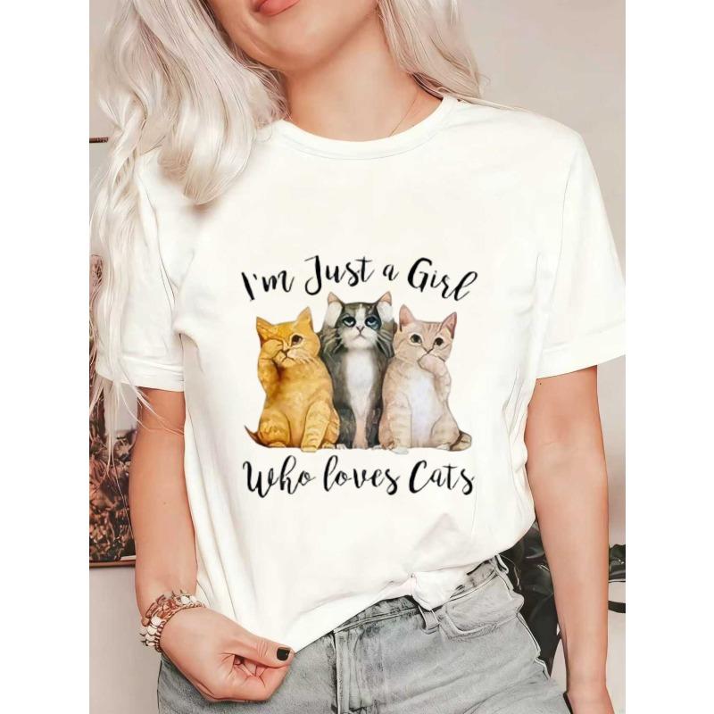 Оверсайз футболка черная три кошки и текст Я просто девушка, которая любит кошек повседневная одежда для женщин летний наряд мода для любителей кошек
