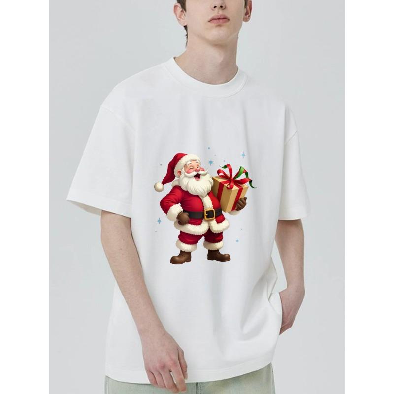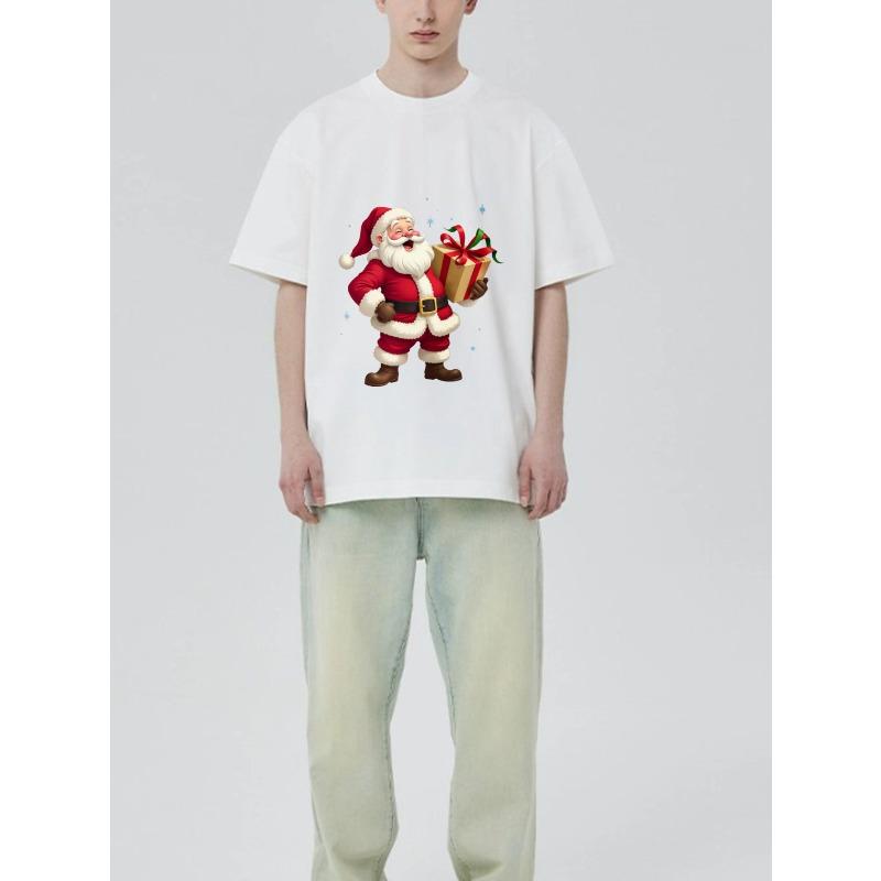 Рождественская футболка Черный Санта Клаус с подарочной коробкой Праздничная одежда для вечеринки
