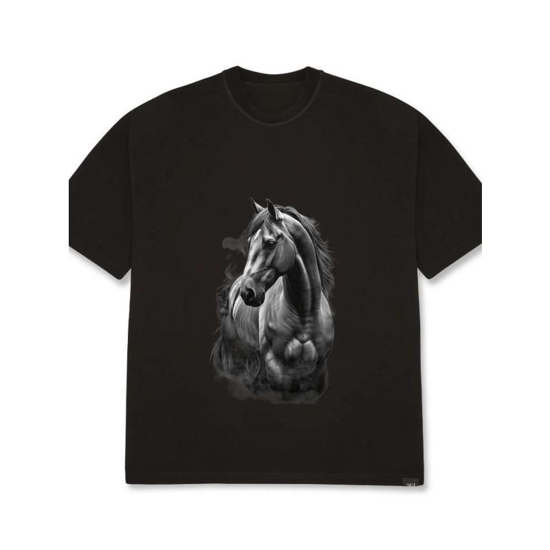 Футболка оверсайз с графическим принтом черной лошади, унисекс, повседневный уличный стиль, топ для мужчин и женщин, для ежедневной носки, модная футболка